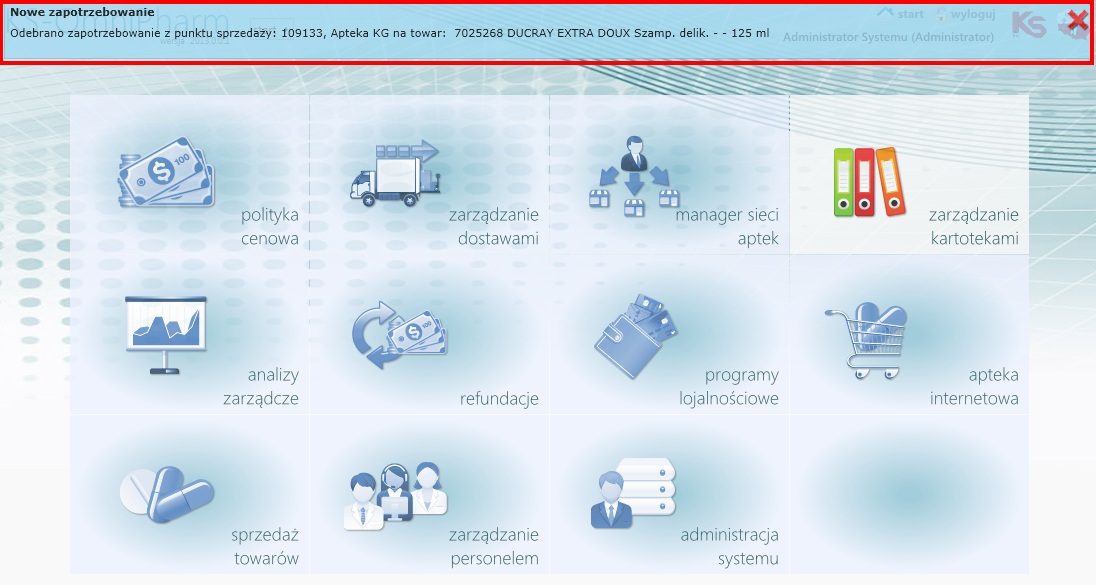KS-ZSA (Zarządzanie Siecią Aptek) - system pozwalający na integrację danych z wielu aptek, co pozwala na prowadzenie zamówień i zakupów, zarządzanie magazynem, tworzenie zestawień, analiz oraz prowadzenie rozliczeń poszczególnych aptek.